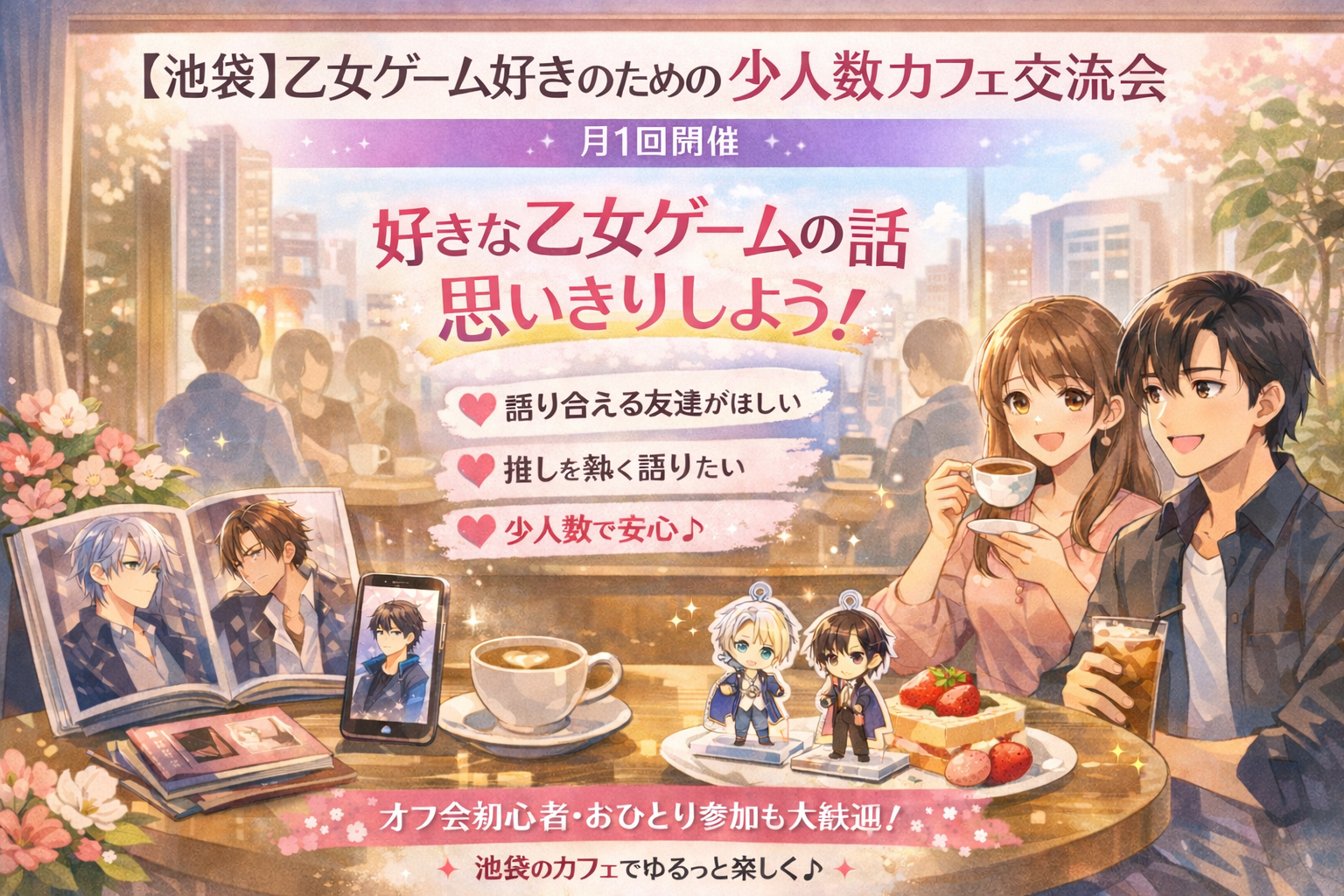 乙女ゲームが好きな方だけが集まる、 少人数でゆっくり話せる交流会を池袋で開催しています。